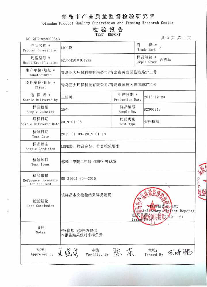 青島正大環(huán)保科技有限公司從事食品包裝20多年來,一直以產品質量安全為核心,用產品質量樹口碑,讓每一位合作的朋友都能完全放心的使用。